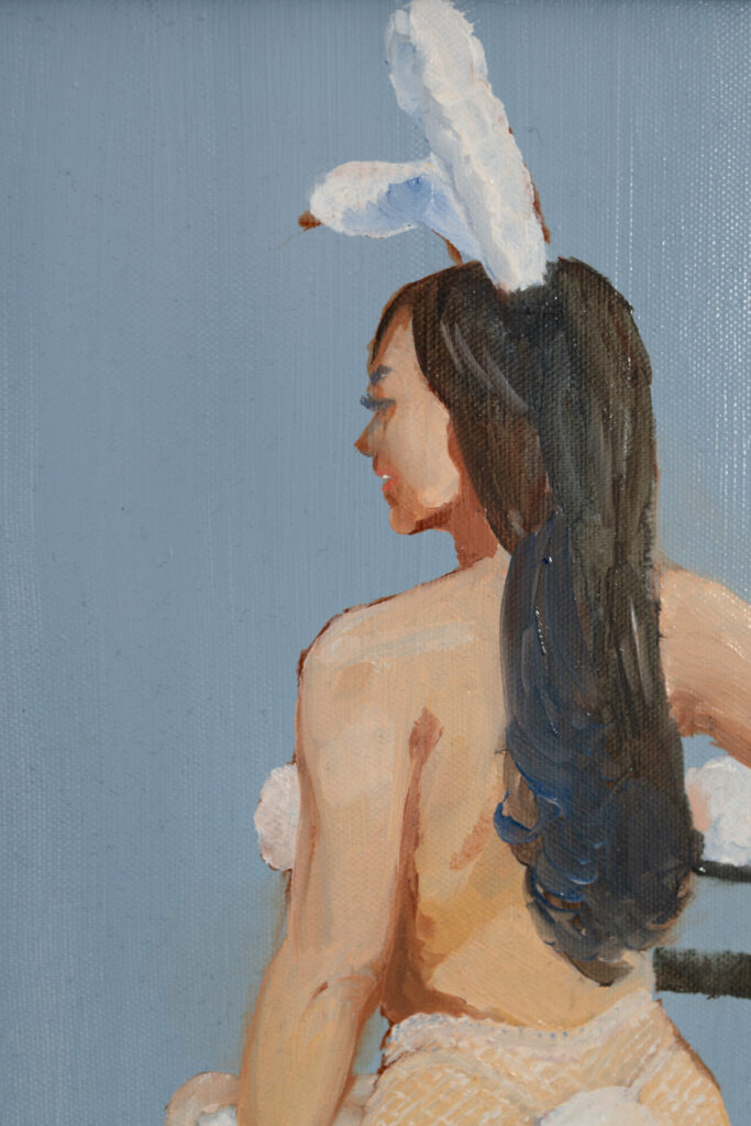 Coniglietta, an Alla prima oil painting on canvas featuring Italian burlesque performer Veruska Puff.