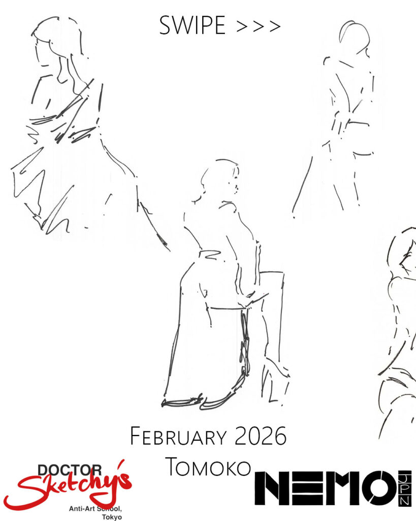 If you’re looking for original figure studies from Dr. Sketchy Tokyo, these works are available as part of my art archive and selected pieces may be available for sale. You can browse more work on my Art for Sale page, or contact me directly for availability and pricing.